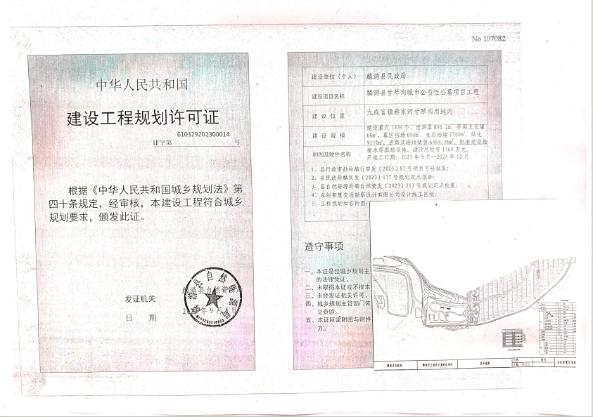 建设工程规划许可证(麟游县甘琴沟城市公益性公墓项目工程)