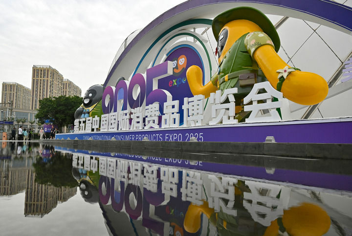 这是2025年4月13日拍摄的第五届中国国际消费品博览会外景。新华社记者 郭程 摄