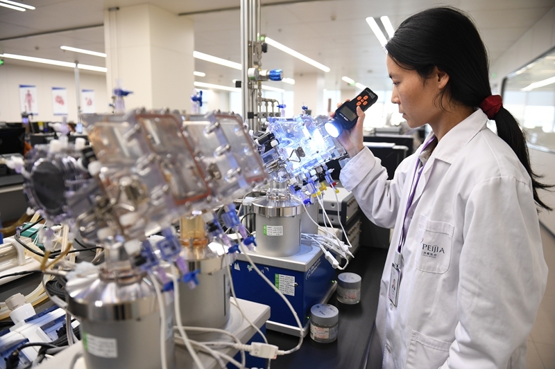 2025年3月21日,在位于苏州工业园区的沛嘉医疗科技(苏州)有限公司测试实验室里,检测人员使用频闪仪检查正在疲劳测试中的人工心脏瓣膜开闭合形态。新华社发(陈雨禾 摄)